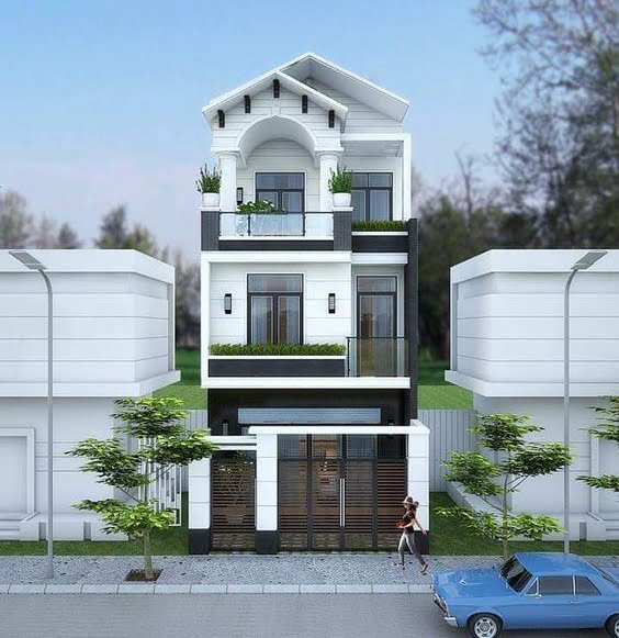 Không chỉ có phong cách hiện đại, gia chủ cũng có thể lựa chọn phong cách tân cổ điển cho những ngôi nhà phố 3 tầng sang trọng. Hệ hoa văn, phù điêu cùng những cánh cửa bằng sắt mỹ thuật mang đến không gian sống đẳng cấp và vô cùng thú vị.