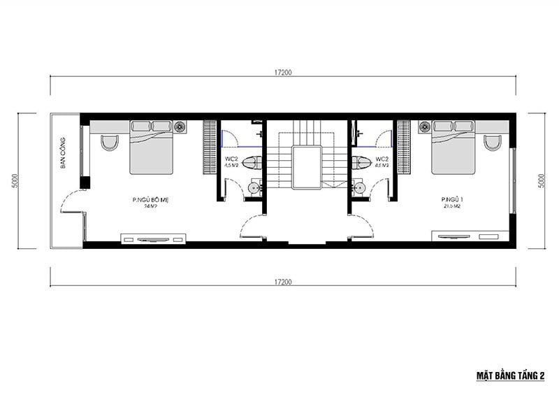 - Tầng 2 được dành cho các hoạt động riêng tư trong gia đình với phòng ngủ bố mẹ và các con. Tùy theo diện tích mà khu vực này có thể được chia từ hai đến 3 phòng.