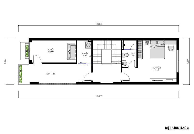 Bản vẽ tầng 3 nhà phố 3 tầng một mặt tiền