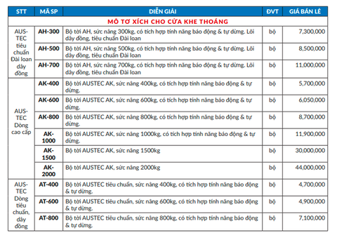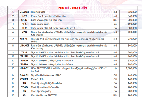 Bảng báo giá cửa cuốn austec tại Lào Cai