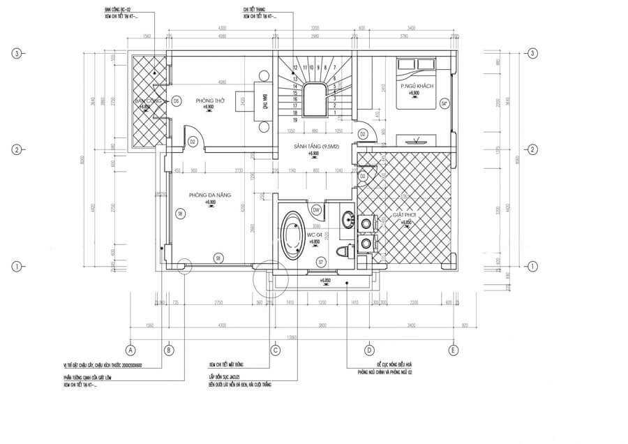 thiết kế nội thất tầng 3 gồm: Phòng thờ, phòng đa năng, phòng ngủ khách, khu giặt phơi