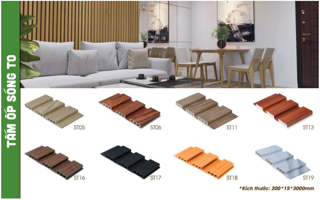 - Tấm nhựa ốp tường vân gỗ sóng nhỏ