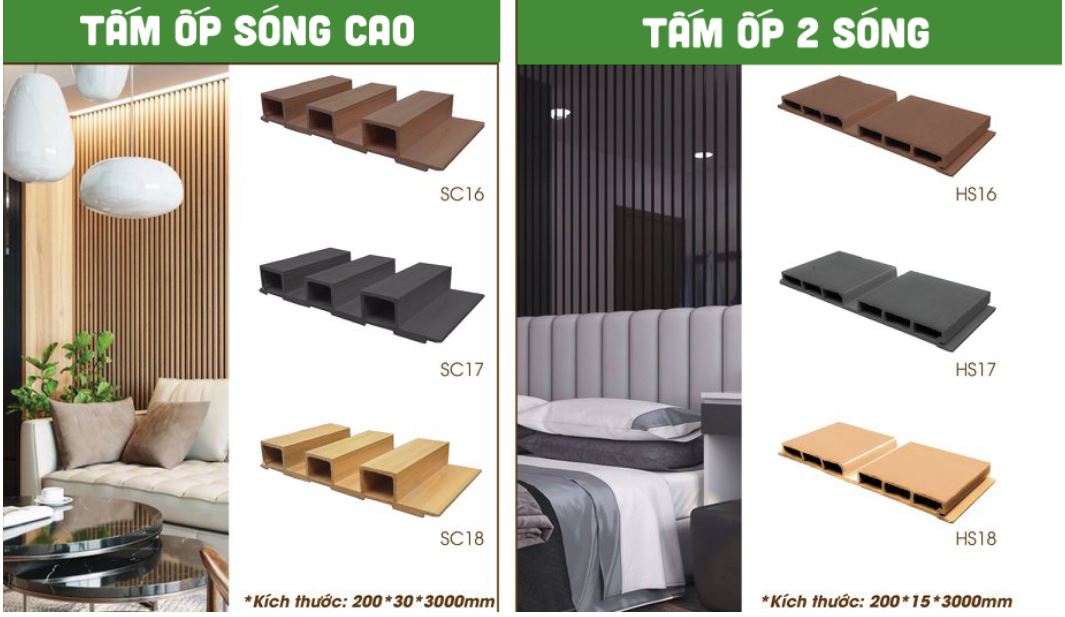 - Tấm ốp tường vân gỗ sóng to: