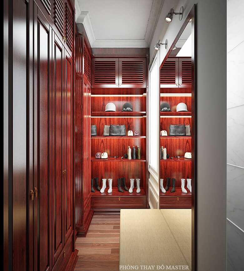 Thiết kế phòng thay đồ sang trọng, ngăn nắp, đem đến không gian kiến trúc hiện đại, tạo cảm hứng cho cuộc sống.