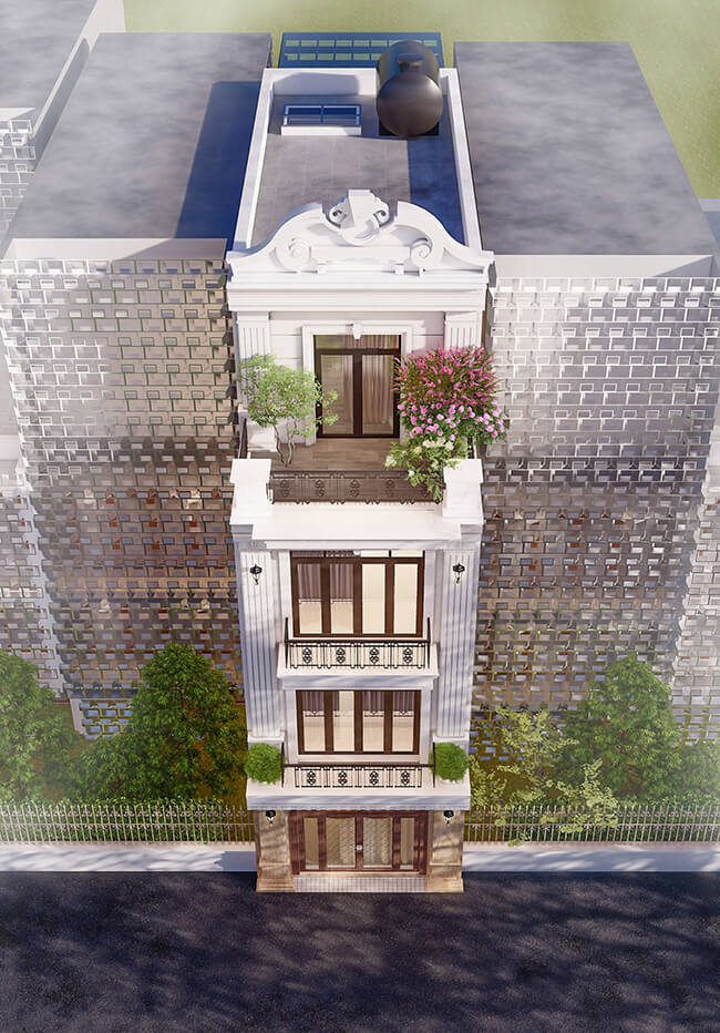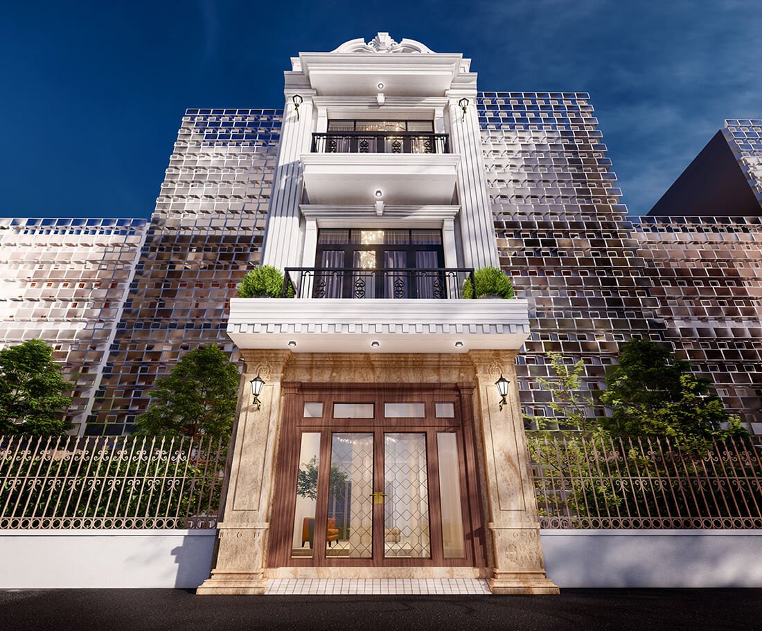 Phối cảnh kiến trúc nhà ống tân cổ điển 4 tầng đẹp: