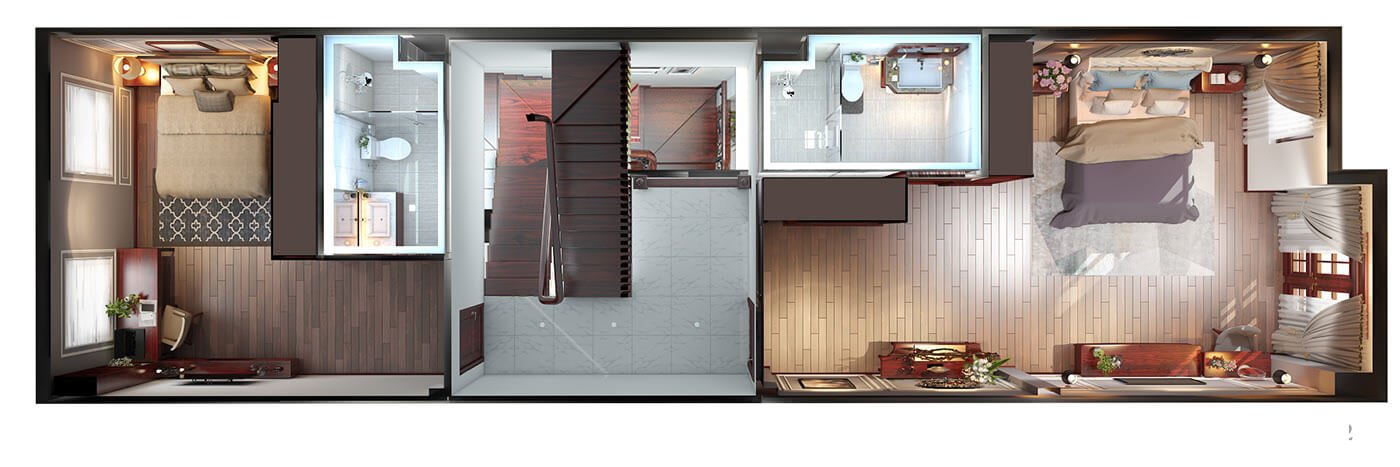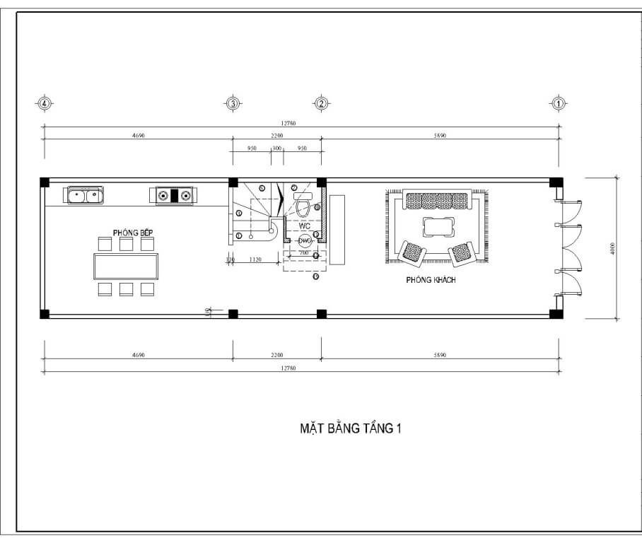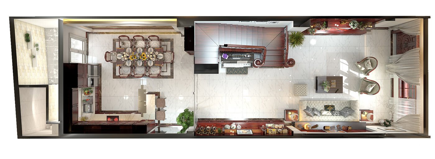 Mặt bằng công năng nhà ống tân cổ điển 4 tầng