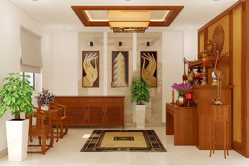 Phòng thờ trang nghiêm, uy nghi phù hợp với nơi thờ cúng.