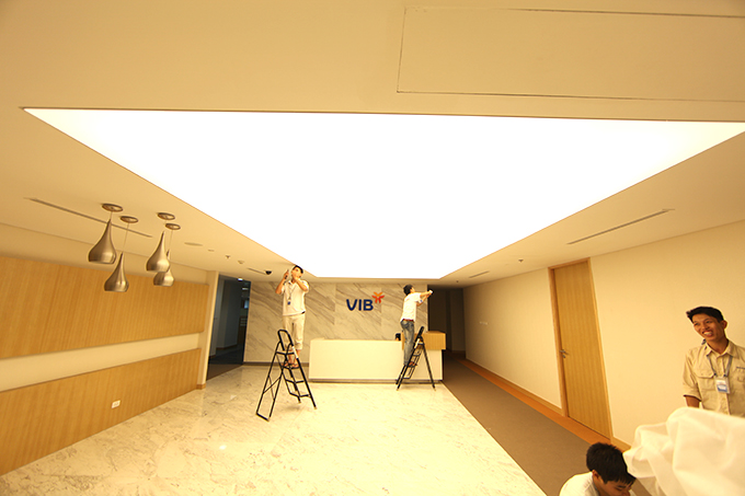 trần xuyên sáng - giai đoạn căng màn nhựa hoàn thiện