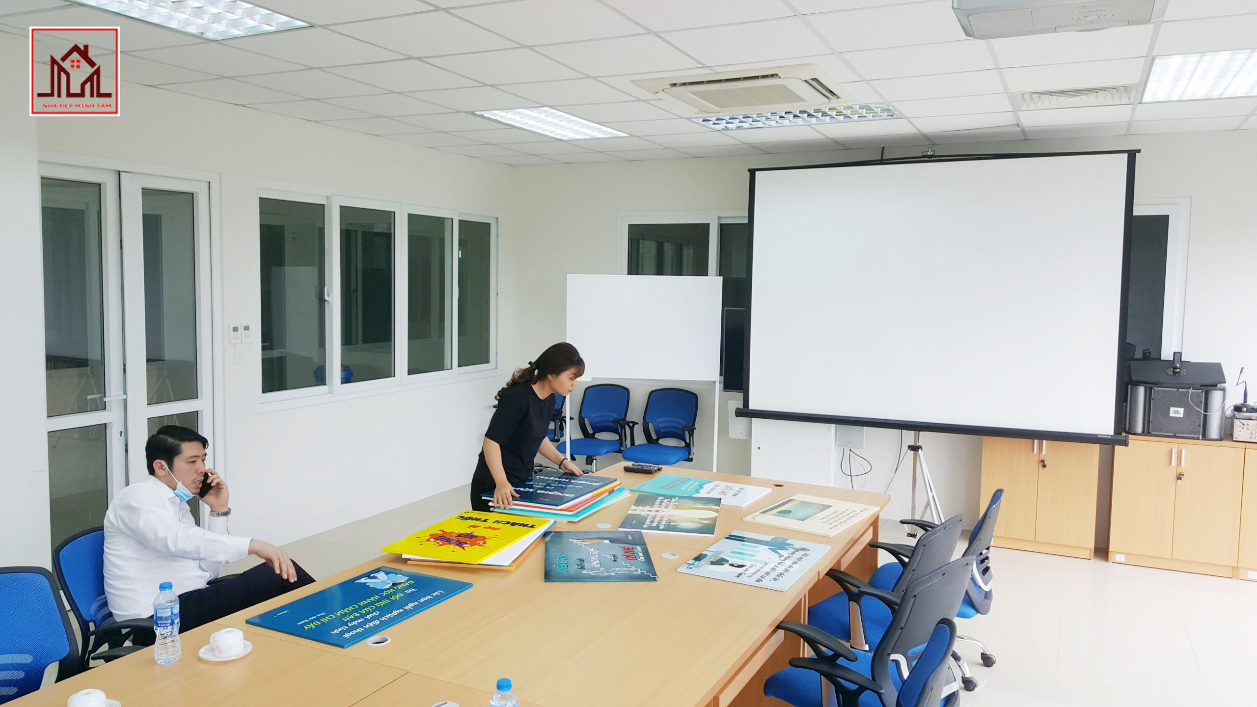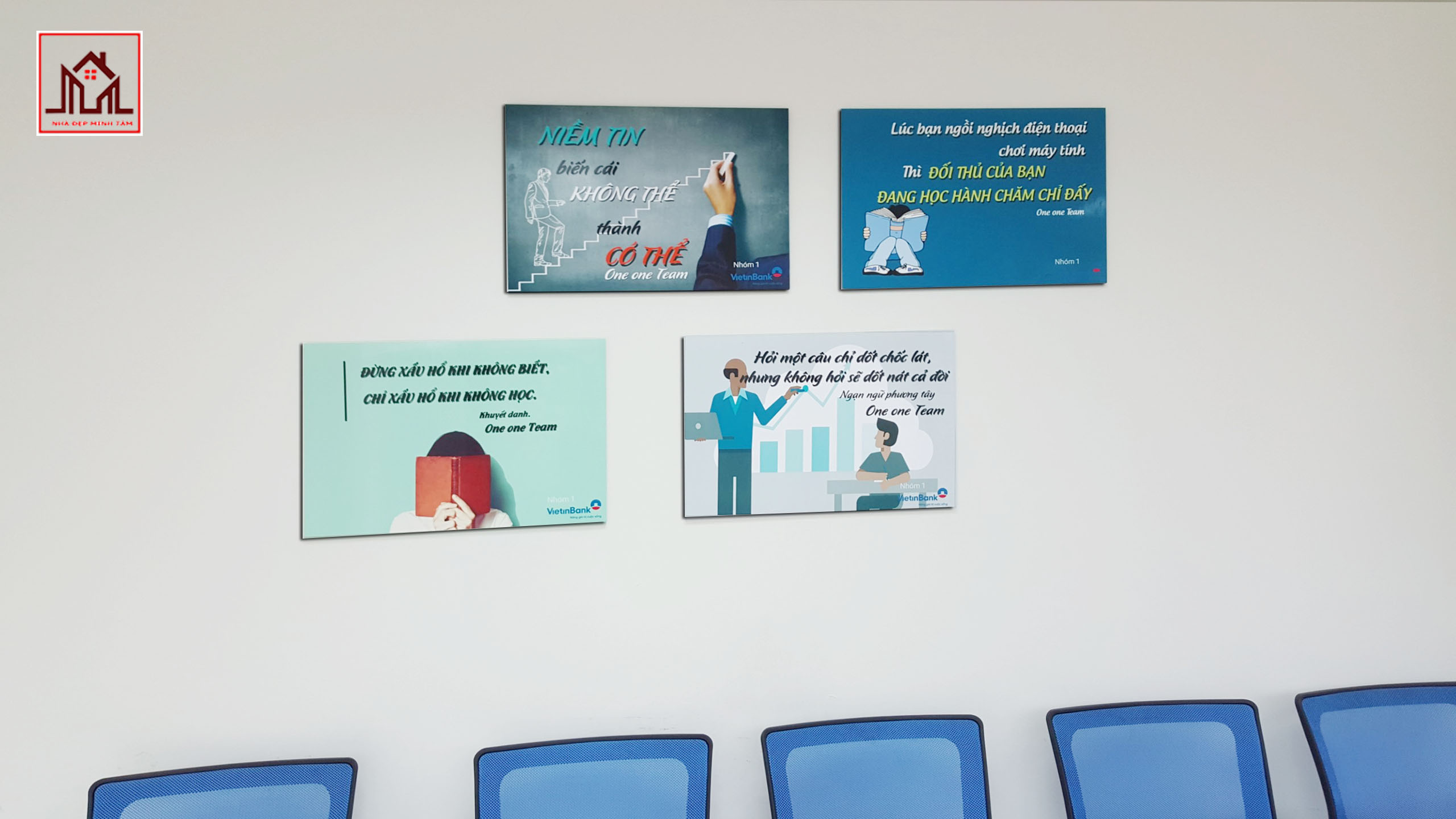 Thi công treo tranh cổ động cho lớp học tại ngân hàng viettinbank